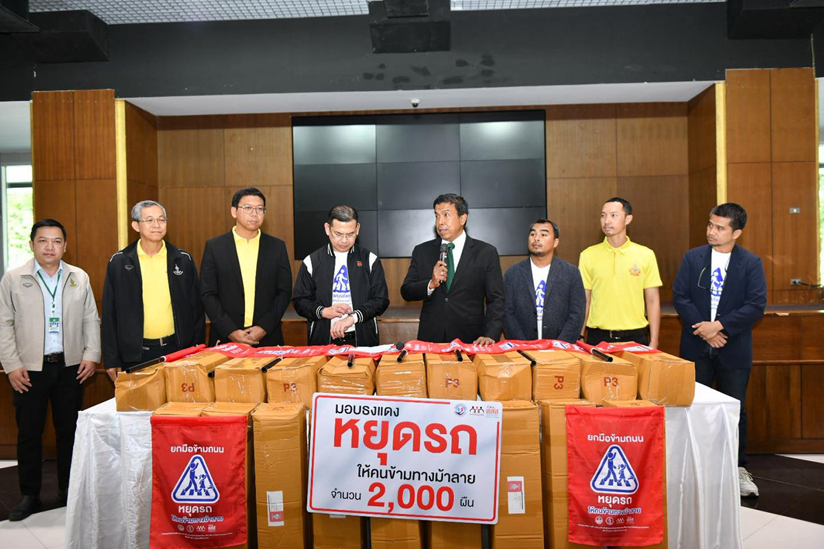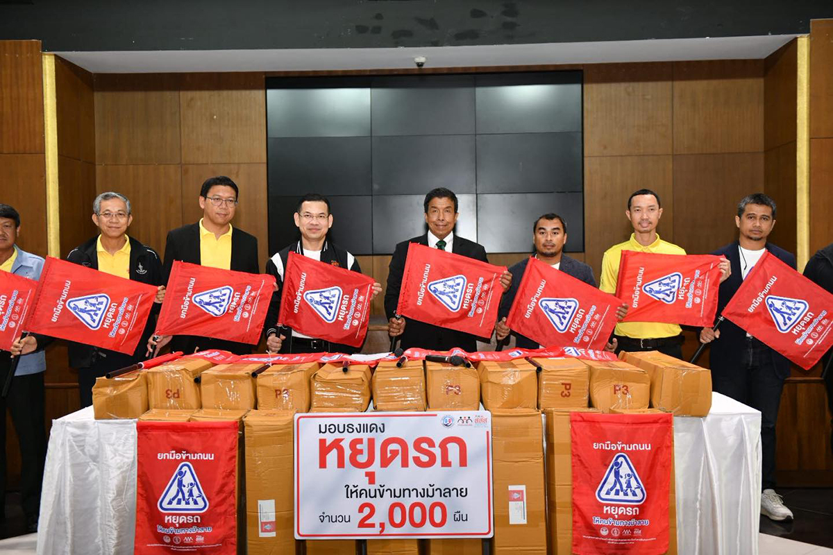 ทั้งนี้ สำนักงานกองทุนสนับสนุนการสร้างเสริมสุขภาพ (สสส.) ร่วมกับเครือข่ายพัฒนาคุณภาพชีวิต มูลนิธิเด็ก เยาวชนและครอบครัว และเครือข่ายพลังผู้สูญเสียจากอุบัติเหตุทางถนน จัดทำธงแดงข้ามทางม้าลาย เพื่อสนับสนุนการเพิ่มความปลอดภัยให้กับนักเรียนและคนข้ามถนน ภายใต้ชื่อ "ยกมือข้ามถนน หยุดรถให้คนข้ามทางม้าลาย" เป็นการสร้างวัฒนธรรมความปลอดภัยทางถนน ปลูกฝังเด็กนักเรียนให้ยกมือขณะข้ามถนน