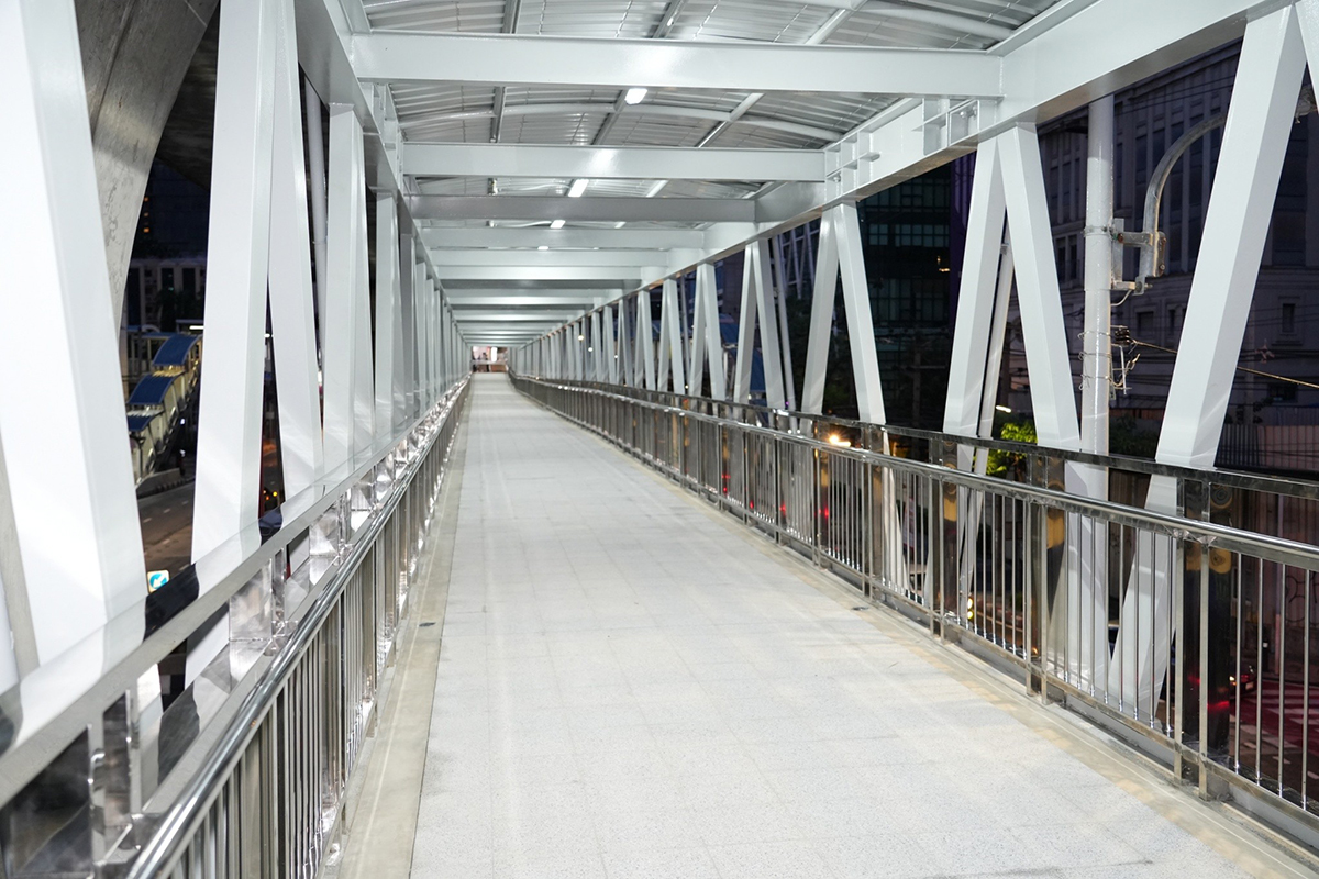 สำหรับโครงการก่อสร้างทางเดินยกระดับ (Skywalk) จากสถานีรถไฟฟ้า BTS สุรศักดิ์ (S5) เชื่อมต่อกับสะพานคนเดินข้ามถนนบริเวณหน้าโรงเรียนกรุงเทพคริสเตียน ความยาวประมาณ 110 เมตร เพื่อส่งเสริมการเดินทางด้วยระบบขนส่งมวลชน เพิ่มประสิทธิภาพในการให้บริการระบบขนส่งมวลชน รวมถึงเพื่อให้ประชาชนได้รับความสะดวกและปลอดภัยในการเดินทางเพื่อเปลี่ยนถ่ายการเดินทาง