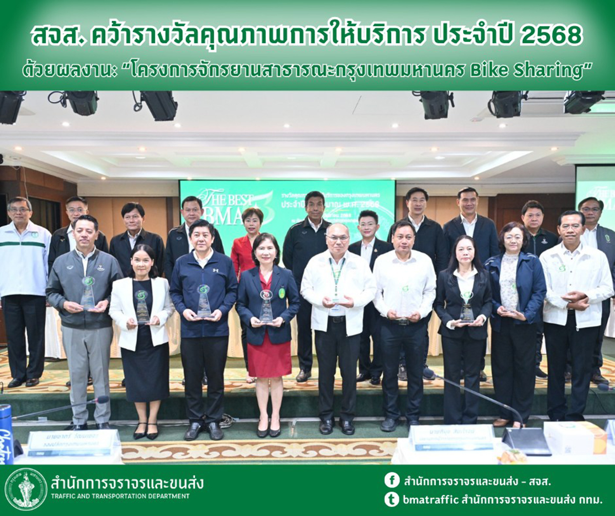 สำนักการจราจรและขนส่ง (สจส.) ได้รับรางวัลชมเชยจากกรุงเทพมหานคร ในการ🎉ประกาศรางวัลคุณภาพการให้บริการ ประจำปี 2568🎉