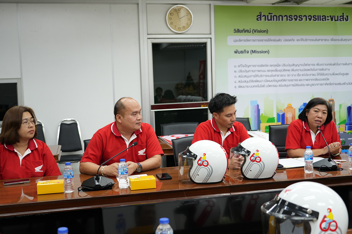 วันนี้ (5 ก.ย.68) นายสิทธิพร สมคิดสรรพ์ ผู้อำนวยการสำนักการจราจรและขนส่ง พร้อมด้วยคณะผู้บริหารสำนักการจราจรและขนส่ง ร่วมรับมอบหมวกกันน็อกมาตรฐานผลิตภัณฑ์อุตสาหกรรม (มอก.) จำนวน 100 ใบ จากคุณอโนชา เมืองสุข ผู้จัดการฝ่ายบริหาร บริษัท ไทยฮอนด้า จำกัด ภายใต้โครงการ “โครงการรณรงค์ความปลอดภัยทางถนนระดับประเทศ 60 ปี ไทยฮอนด้า ขับขี่ปลอดภัย เพื่อสังคมไทยที่ยั่งยืน”