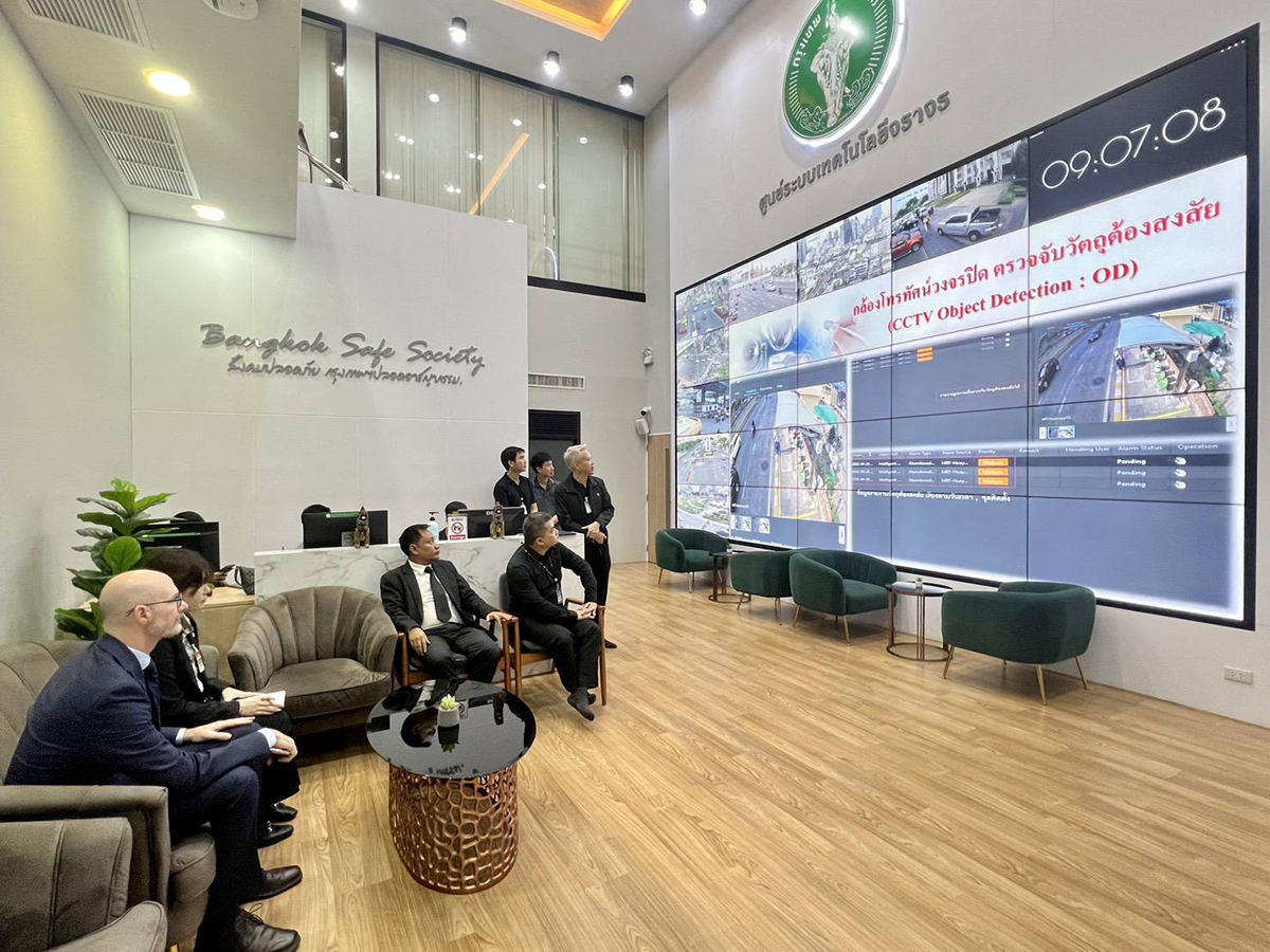 ในการเยี่ยมชมครั้งนี้ คณะผู้แทนได้รับฟังการบรรยายเกี่ยวกับระบบบริหารจัดการกล้อง CCTV ของกรุงเทพมหานคร การเชื่อมโยงข้อมูลเพื่อสนับสนุนการเฝ้าระวังความปลอดภัย การจราจร และการบูรณาการทำงานร่วมกับหน่วยงานด้านความมั่นคง รวมถึงได้เยี่ยมชมการทำงานของเจ้าหน้าที่ในห้องปฏิบัติการจริง