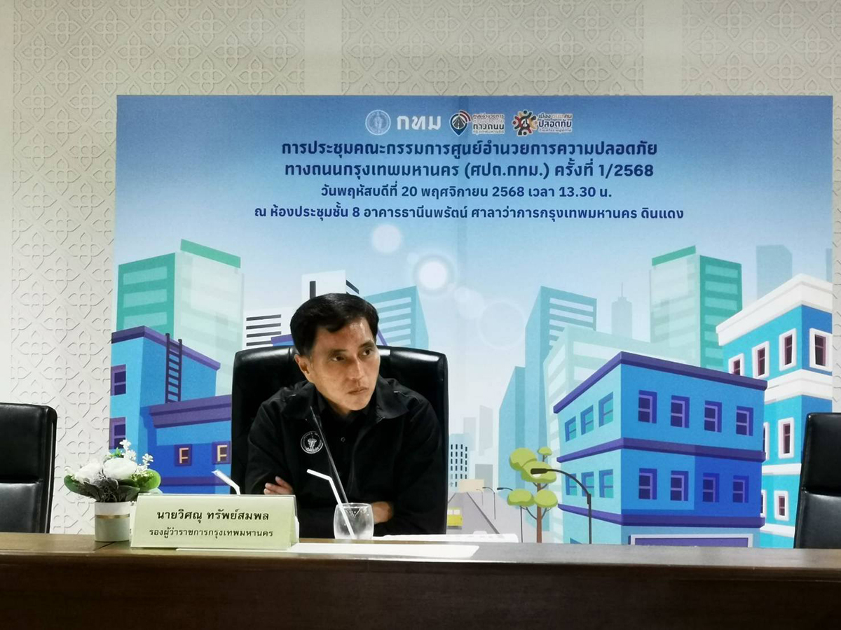 (20 พ.ย.68 ) กรุงเทพมหานครจัดการประชุมคณะกรรมการศูนย์อำนวยการความปลอดภัยทางถนนกรุงเทพมหานคร ครั้งที่ 1/2568 โดยมี นายวิศณุ ทรัพย์สมพล รองผู้ว่าราชการกรุงเทพมหานคร เป็นประธานการประชุมฯ และมีภาคีเครือข่ายเข้าร่วมการประชุม ณ ห้องประชุมชั้น 8 อาคารธานีนพรัตน์ ศาลาว่าการกรุงเทพมหานคร 2 เขตดินแดง และประชุมผ่านระบบออนไลน์ ศปถ.กทม. รายงานแนวโน้มผู้เสียชีวิตจากอุบัติเหตุทางถนน ของกรุงเทพมหานคร ในปี 2567 สถิติผู้เสียชีวิต ลดลงอย่างมีนัยสำคัญ 13.42% และคาดการณ์แนวโน้มลดลงอย่างต่อเนื่องในปี 2568 ลดลง 11% และมีแนวโน้มที่จะลดลงตามเป้าหมาย 12 คนต่อประชากร 100,000 คน ของ WHO ในปี 2570 หากเดินหน้ามาตรการเข้มข้นอย่างต่อเนื่อง