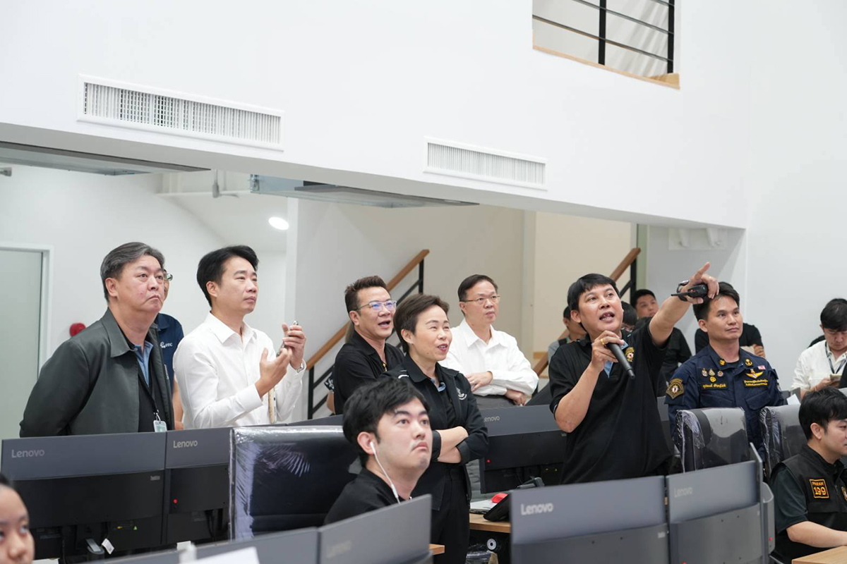การทดสอบครั้งนี้ ได้รับเกียรติจาก รศ.ทวิดา กมลเวชช และ นายวิศณุ ทรัพย์สมพล รองผู้ว่าราชการกรุงเทพมหานคร ร่วมติดตามและประเมินประสิทธิภาพของระบบ เพื่อยกระดับการสั่งการและการประสานงานระหว่างหน่วยงานให้เป็นไปอย่างแม่นยำ รวดเร็ว และทันต่อสถานการณ์