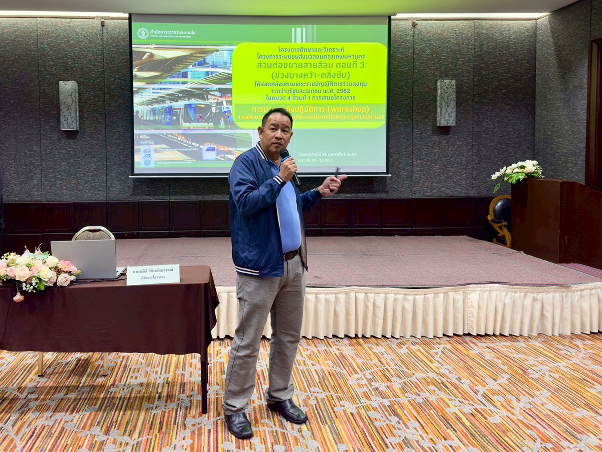 วันที่ 26 กุมภาพันธ์ 2569 สำนักการจราจรและขนส่ง กรุงเทพมหานคร จัดการประชุมเชิงปฏิบัติการ (Workshop) โครงการศึกษาและวิเคราะห์ระบบขนส่งมวลชนกรุงเทพมหานคร ส่วนต่อขยายสายสีลม ตอนที่ 3 (ช่วงบางหว้า–ตลิ่งชัน) เพื่อให้การดำเนินโครงการสอดคล้องตามพระราชบัญญัติการร่วมลงทุนระหว่างรัฐและเอกชน พ.ศ. 2562 หมวด 4 ส่วนที่ 1 การเสนอโครงการ